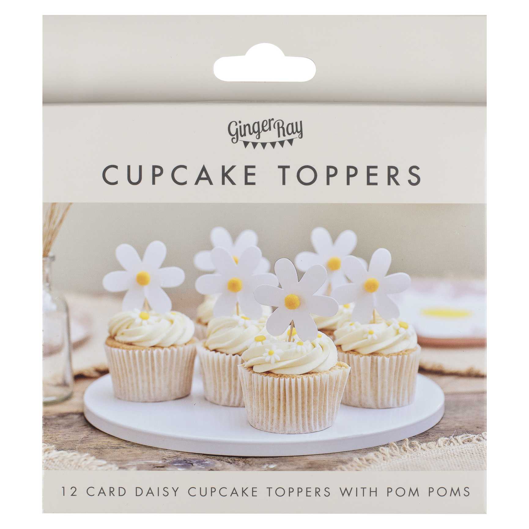 12 x Daisy cupcake toppers. Each cupcake topper measures 4.7cm (H) x 4.7cm (W).