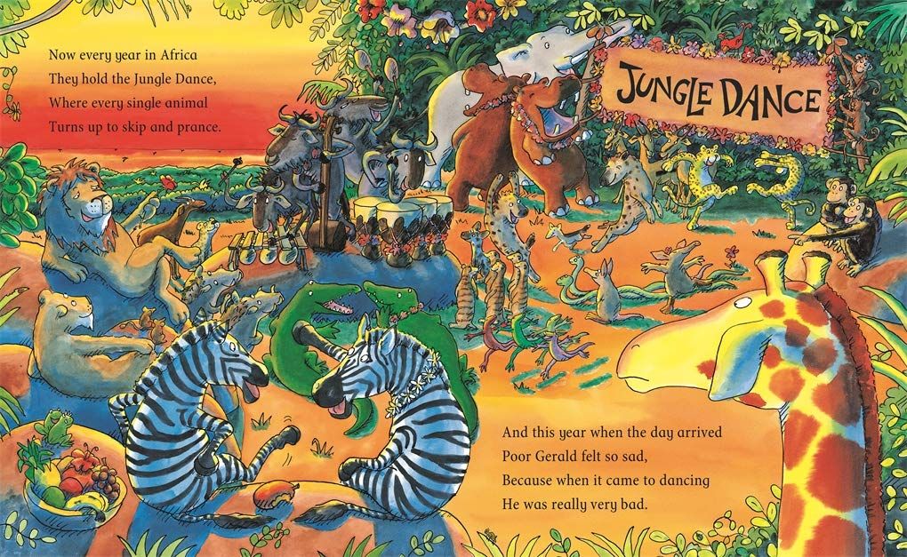 Gerald the giraffe longs to go to the great Jungle Dance, but how can he join in when he doesn't know how to tango or two-step? Everyone knows that giraffes can't dance . . . or can they?