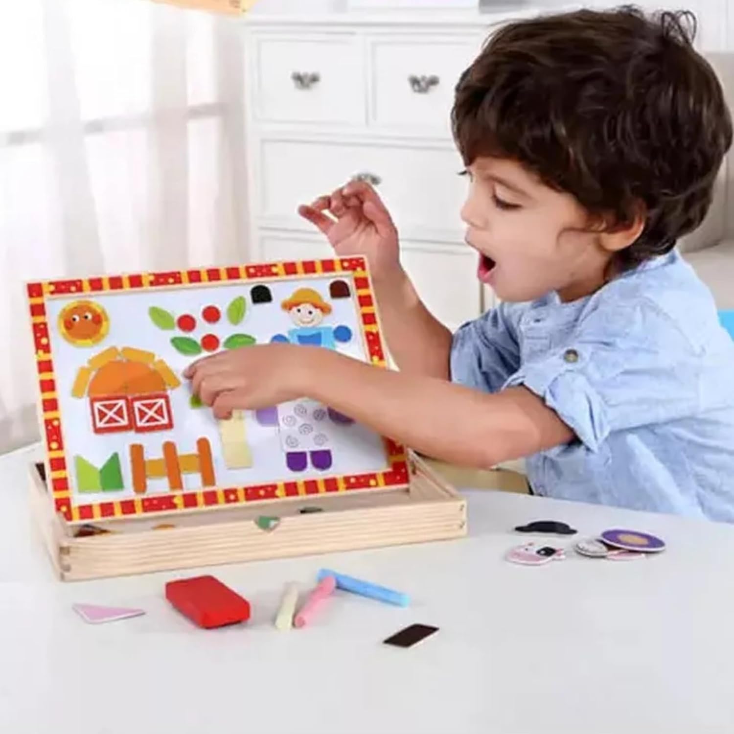 The truck features interactive elements such as moving cogs and a mini maze, adding to the play experience. A handy tray at the back provides convenient storage for all the tools and parts. Painted in muted blue tones with non toxic, child safe paint, and crafted from FSC certified timber, this walker is designed to be both safe and durable. Ideal for building confidence and strength while walking, the Tool Bench Truck Push Walker ensures that playtime is engaging and educational.