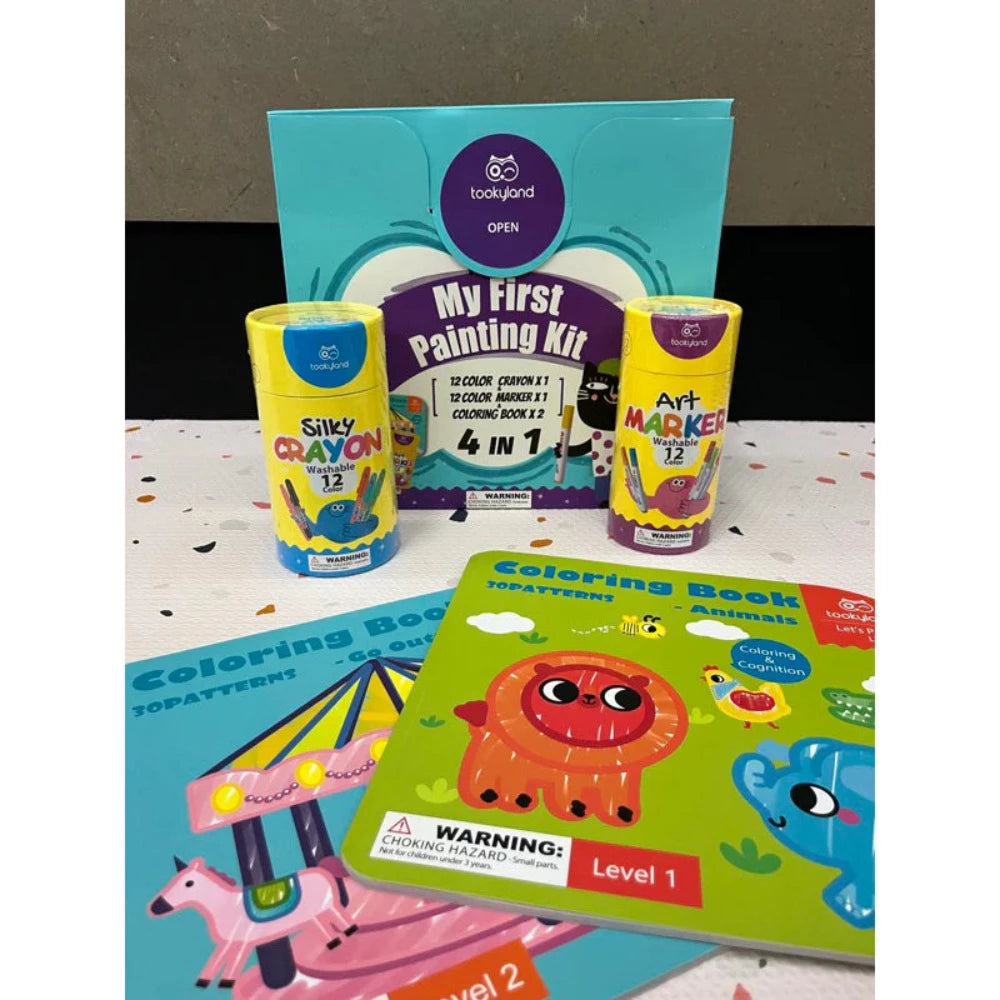 - 2 colouring books with thematic pictures of 16 pages of different difficulty levels.