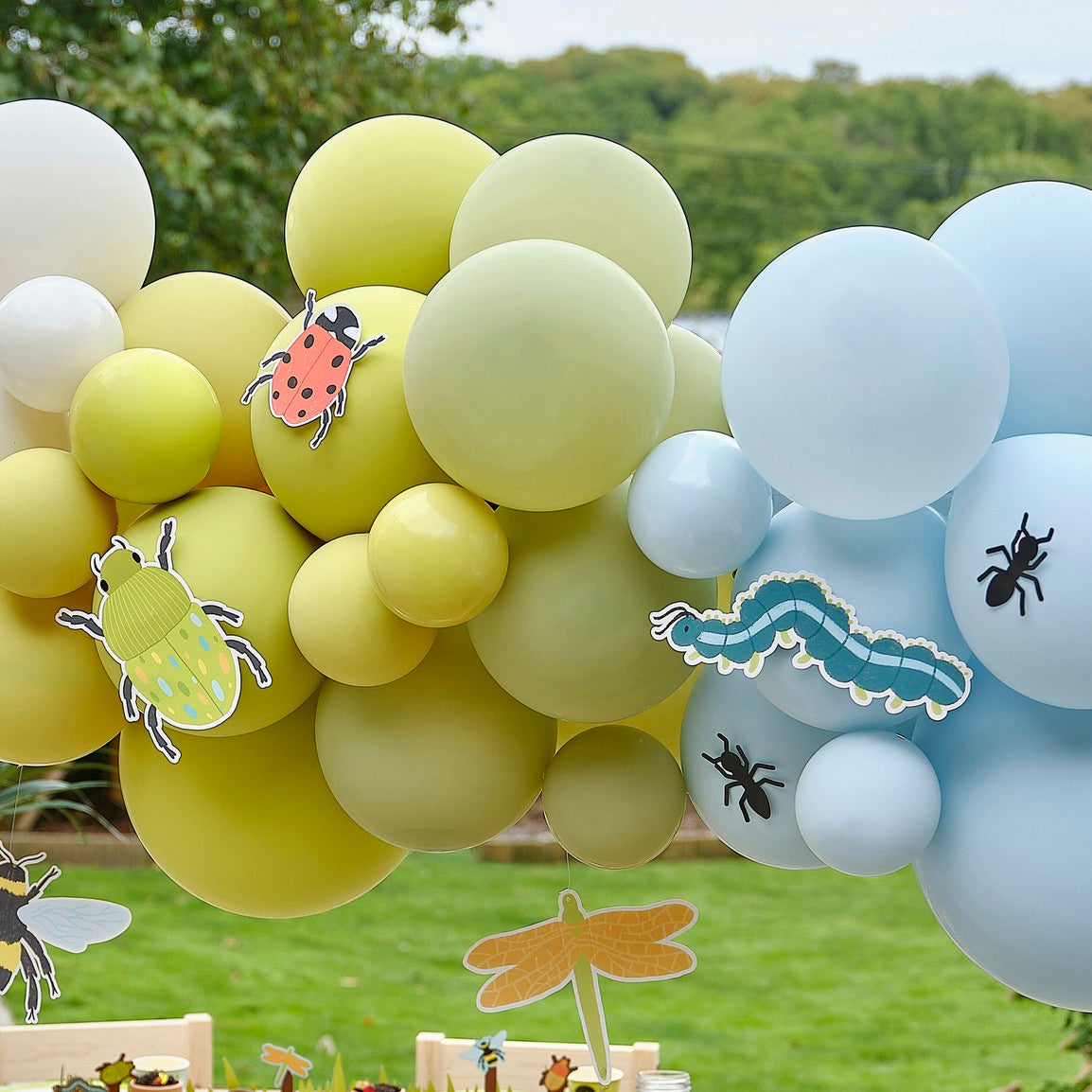 Orange, Cream, Green & Blue Bug Party Balloon Arch with Card Bugs