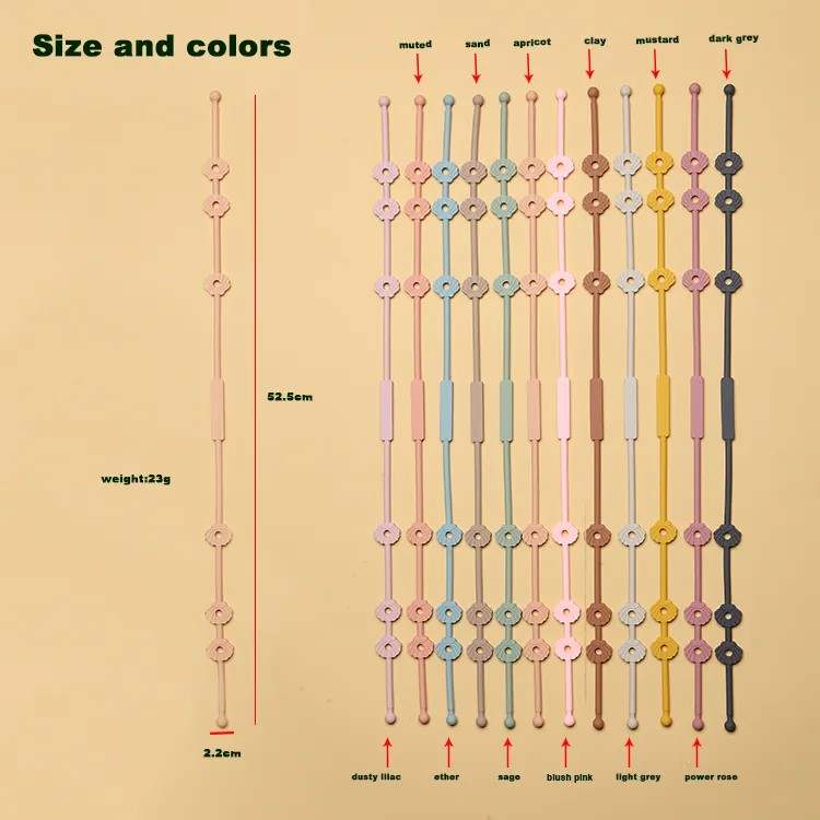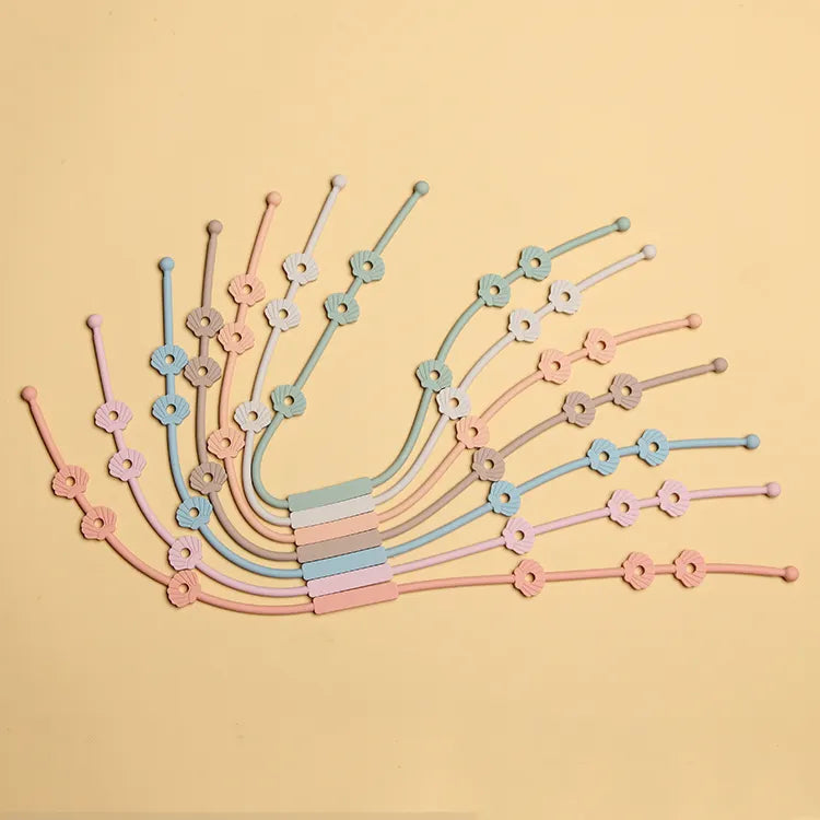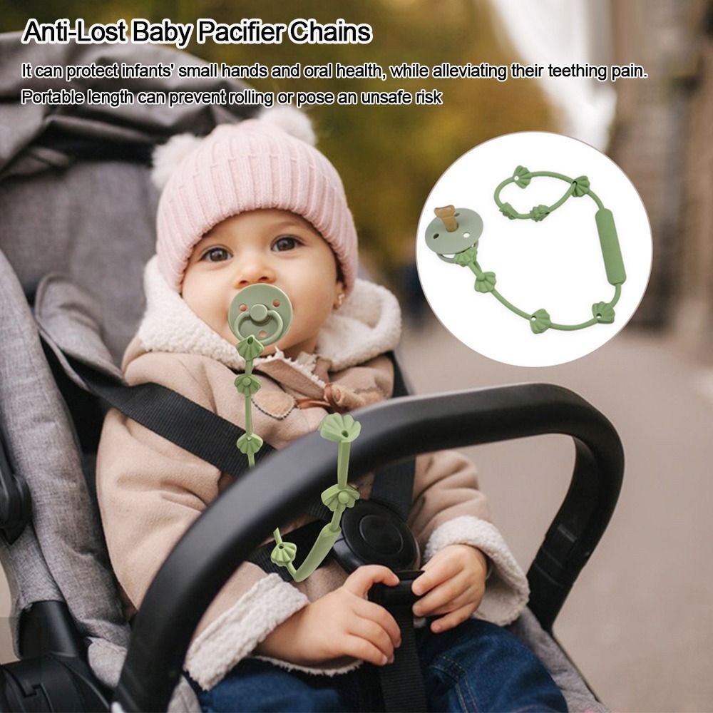 1. The pacifier chain with silicone & adjustable buckle,soft design well protect baby oral for Health,the chain is easy to fixed and prevent the pacifier,teething toys get lost or drop to the floor,the lanyard can link to babys teething toys easily.