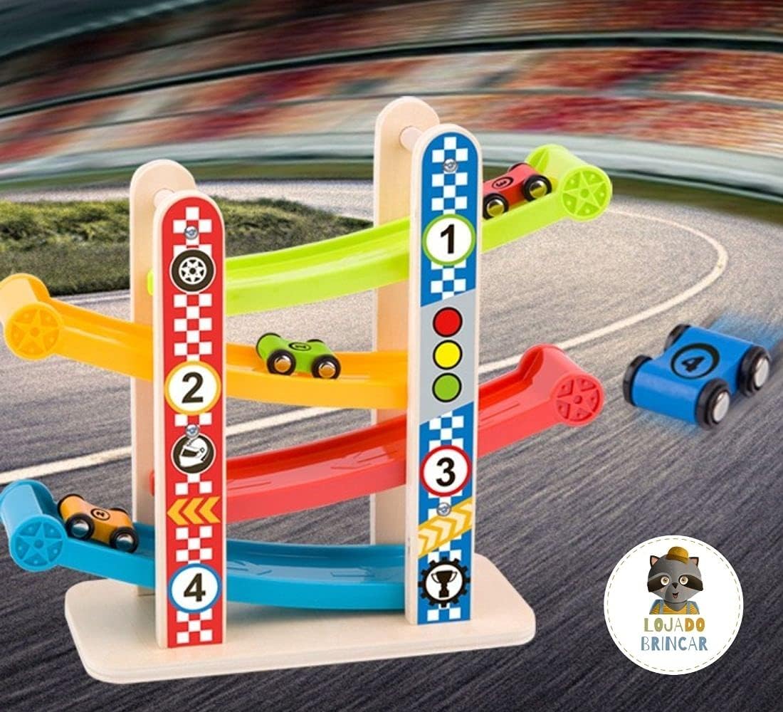- A criança coloca os carrinhos no início ou meio da pista
