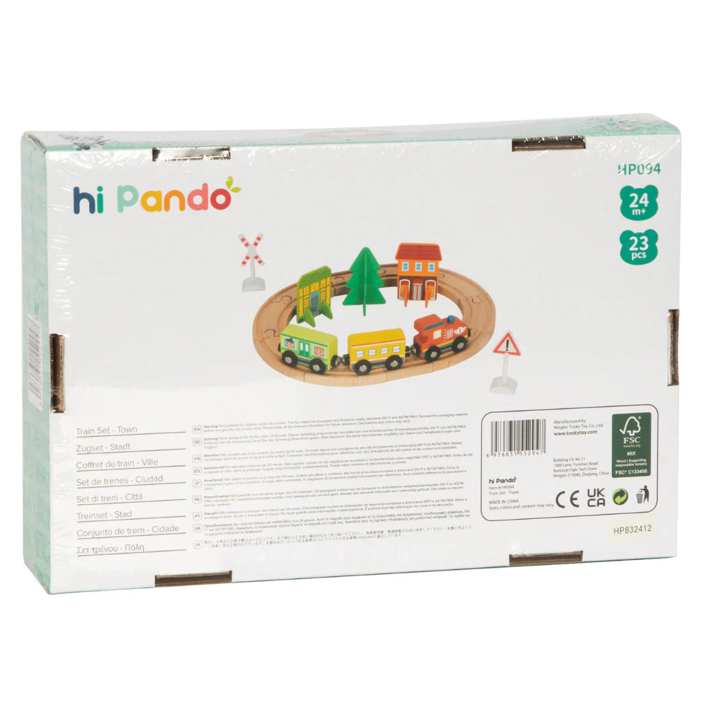Little ones can build their own circular track using the easy-connect wooden pieces, then send the bright red engine and its two carriages on exciting journeys around a bustling town scene. Complete with buildings, road signs, and a tree, this set invites storytelling, role-play, and endless exploration.