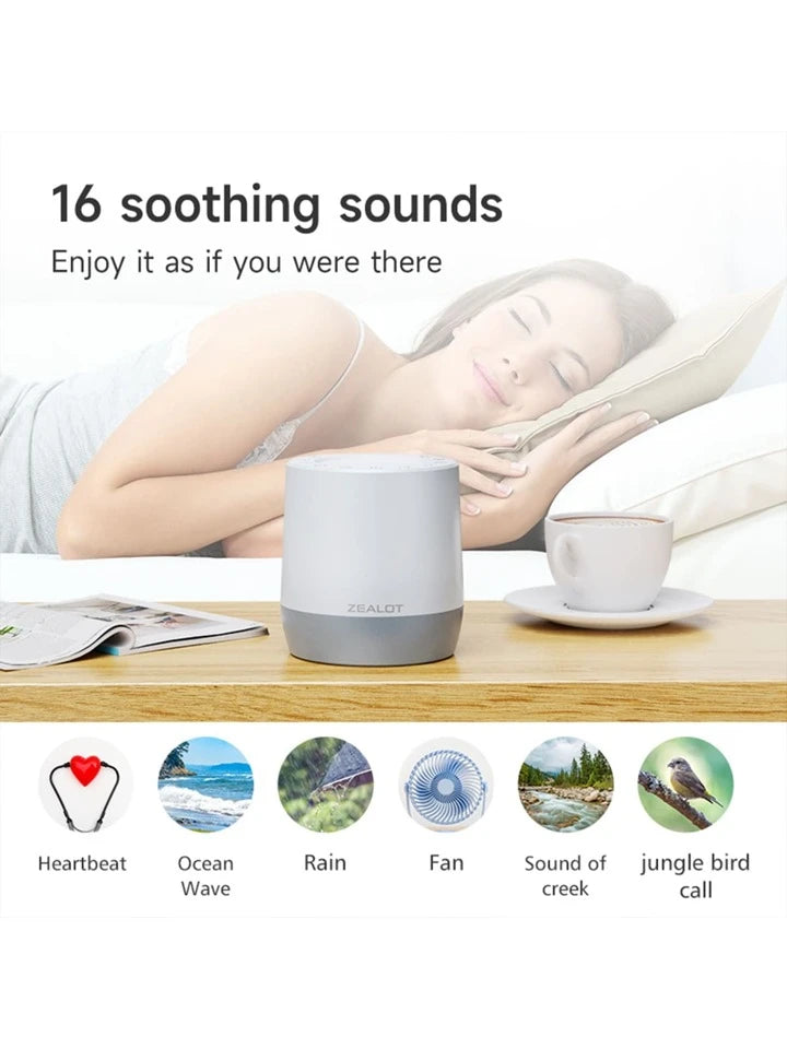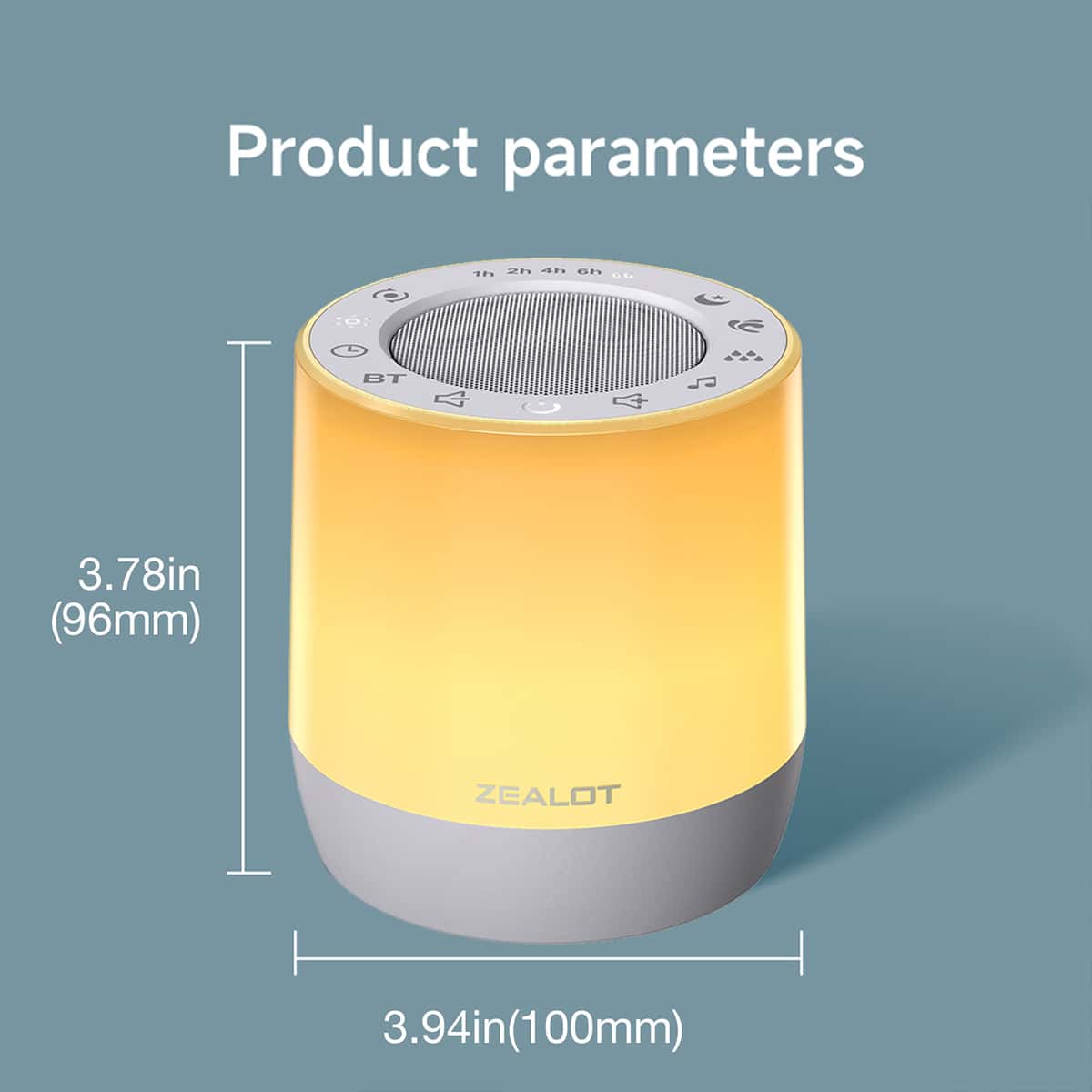 Zealot Z6 White Noise Sleep Aid Speaker, Sleep Speaker With 16 Built-In Natural Sounds ,Bedroom Speaker With 6 Adjustable Light Color, 5 Adjustable Brightness Level, Bt 5.2 Stable Transmission, Ambient Lighting Speaker, Sunset Light Speaker, Speaker For Yoga,Meditation,Sleep.